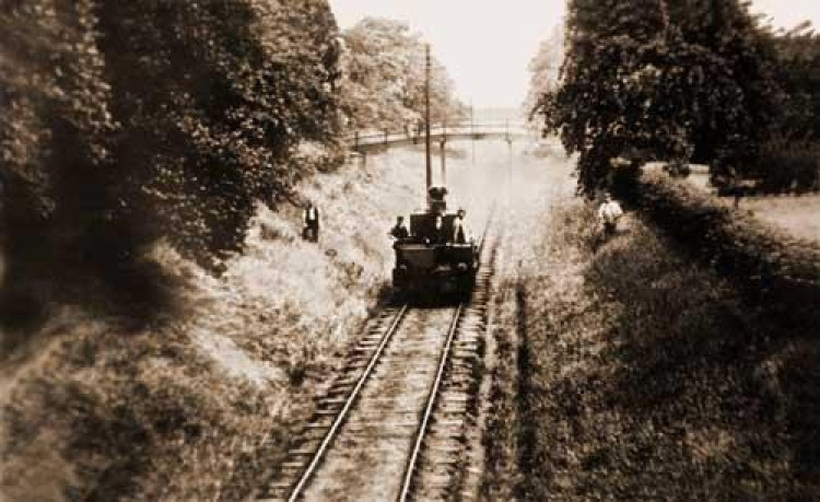 Opened in 1853, the tramway, known as the Bogie Line, linked the coal wharf at Reddish with the collieries, crossing Denton Brook in the valley of Denton Wood on a high embankment, intersecting Ross Lave Lane and continuing behind Hyde Hall at the top of the lane to the colliery near Stockport Road. Denton Colliery closed in 1929 and the line was dismantled ten years later.