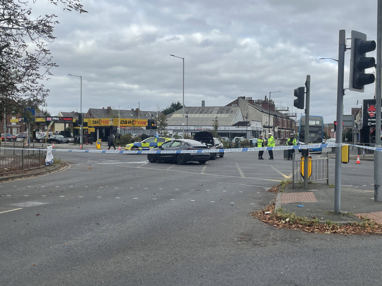 Emergency services are responding to a crash at the junction of Heaton Moor Road and Wellington Road North.