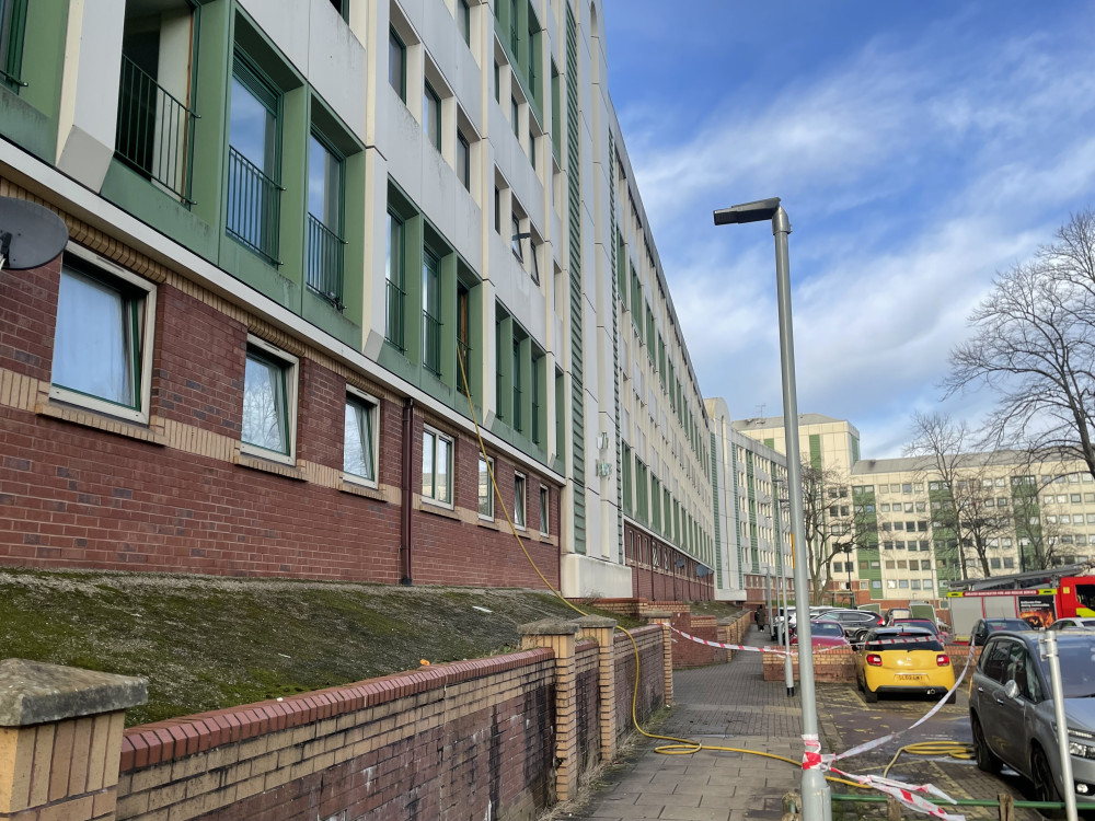 Fire crews were called to Lancashire Hill in Stockport today (20 January) to attend to a blaze in one of the blocks.