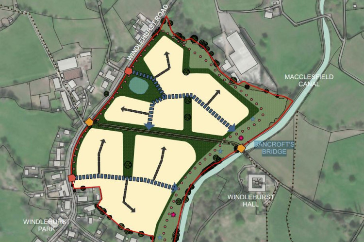 Up to 250 homes are being planned on land off Windlehurst Road in the village of High Lane, close to the Macclesfield Canal by Bancroft's Bridge.