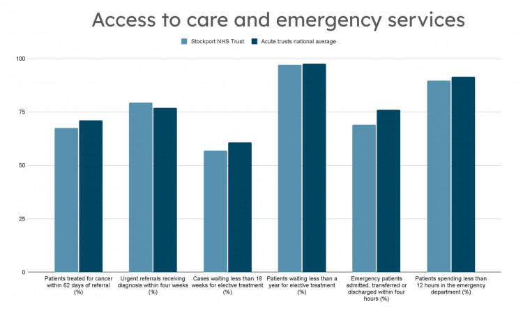 Stockport NHS Trust - which manages Stepping Hill Hospital and other specialist centres across the borough - was given an overall ranking of 86 out of 134 different acute trusts.