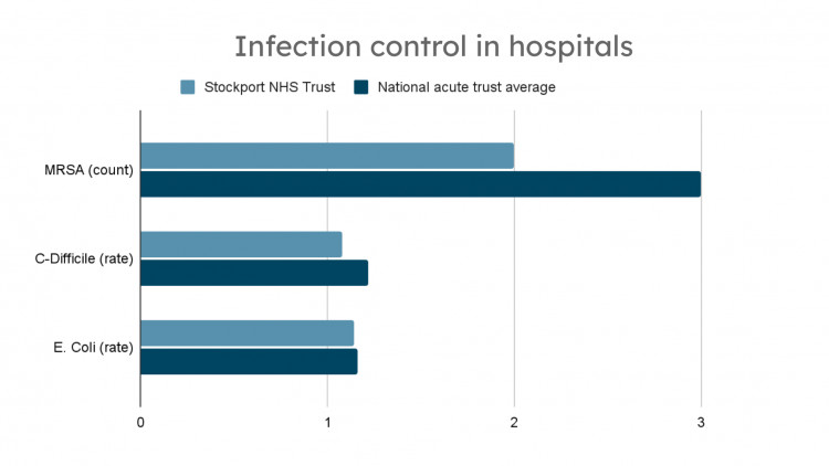 Stockport also scored highly in patient safety, with below average rates for hospital-borne infections such as MRSA, C-Difficile, and E. Coli.