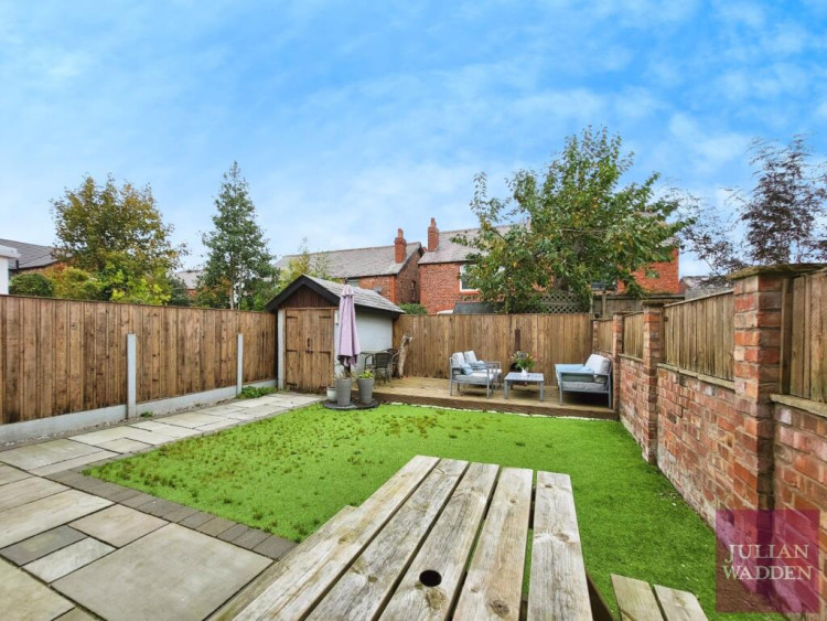 "Externally the property is set back from the road at the front with ample street parking. The rear garden has a paved and artificial lawn area, with additional raised decked seating area.