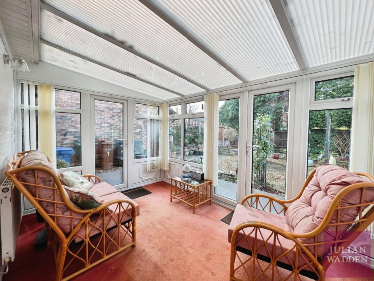 "The main bedroom provides access to the conservatory, offering additional living space and a pleasant outlook onto the private, south westerly facing rear garden.